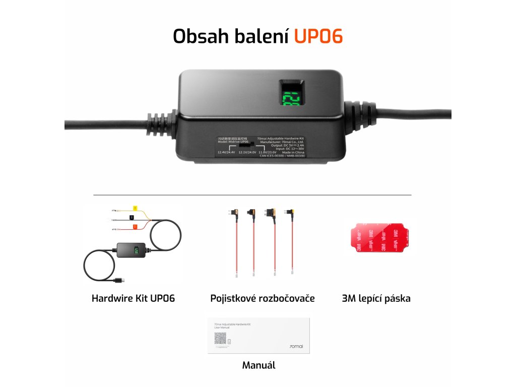 S napájecím adaptérem 70mai UP06 Vám již nic neunikne. Získáte tím 24 hodinové napájení palubní kamery i bez nastartovaného vozidla se zaručením ochrany autobaterie před vybitím. To zaručuje zabudovaný nastavitelný snímač napětí, který nepřetržitě hlídá aktuální kapacitu autobaterie a navíc ukazuje aktuální napětí. Balení obsahuje několik druhů pojistek, takže je adaptér kompatibilní s každým vozem.
