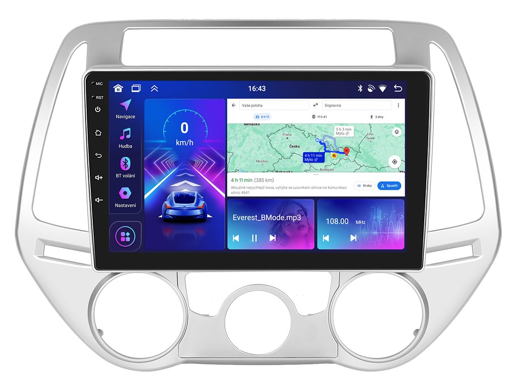 Zažijte každý okamžik ve vašem Hyundai i20 s neuvěřitelným zvukem díky 2DIN autorádiu Bmode BEV49. Na první pohled upoutá moderní technologie CarPlay a AndroidAuto, které umožňují bezproblémové zrcadlení a ovládání telefonu na displeji autorádia. Jeho 9 palcová dotyková obrazovka zachycuje každý detail v HD rozlišení, což potěší spolucestující při cestování. Vysoký výkon zajistí čtyřjádrový procesor s podporou 4 GB RAM. Náročný posluchač jistě ocení funkci DSP neboli digitální signálový procesor, který násobně zvyšuje kvalitu reprodukce. Funkce Bluetooth umožní pohodlné a bezpečné handsfree volání a vyřizování důležitých hovorů. Pokud si občas nevíte rady se správnou cestou, můžete využít zabudovaného GPS modulu, který Vás přivede na tu správnou cestu. Pomocí Google obchodu si můžete stáhnout svou oblíbenou GPS navigaci. Operační systém Android 15 se postará o ovládání mnoha oblíbených aplikací. Pro bezpečné couvání můžete snadno propojit autorádio s parkovací kamerou. Autorádio nabízí možnost výběru z různých jazyků, které obsahují přeloženou základní část systému do českého jazyka.