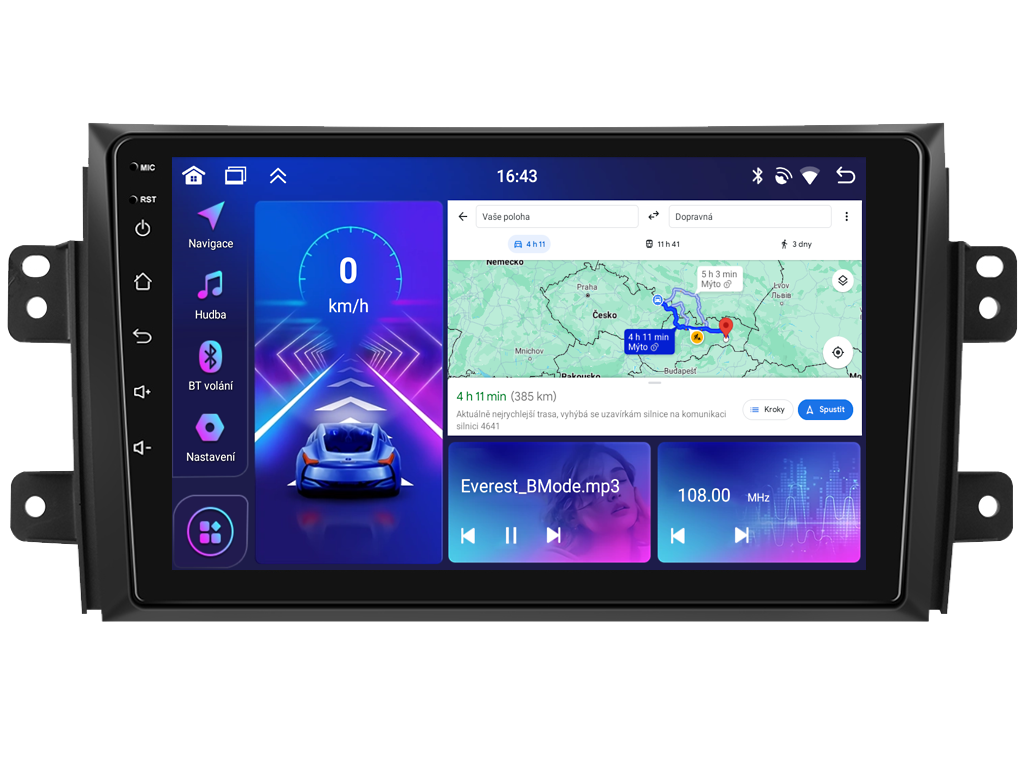 Zažijte každý okamžik ve vašem Suzuki SX4 s neuvěřitelným zvukem díky 2DIN autorádiu Bmode BEX76. Na první pohled upoutá moderní technologie CarPlay a AndroidAuto, které umožňují bezproblémové zrcadlení a ovládání telefonu na displeji autorádia. Jeho 9 palcová dotyková obrazovka zachycuje každý detail v HD rozlišení, což potěší spolucestující při cestování. Vysoký výkon zajistí osmijádrový procesor s podporou 6 GB RAM. Náročný posluchač jistě ocení funkci DSP neboli digitální signálový procesor, který násobně zvyšuje kvalitu reprodukce. Funkce Bluetooth umožní pohodlné a bezpečné handsfree volání a vyřizování důležitých hovorů. Pokud si občas nevíte rady se správnou cestou, můžete využít zabudovaného GPS modulu, který Vás přivede na tu správnou cestu. Pomocí Google obchodu si můžete stáhnout svou oblíbenou GPS navigaci. Operační systém Android 15 se postará o ovládání mnoha oblíbených aplikací. Pro bezpečné couvání můžete snadno propojit autorádio s parkovací kamerou. Autorádio nabízí možnost výběru z různých jazyků, které obsahují přeloženou základní část systému do českého jazyka.