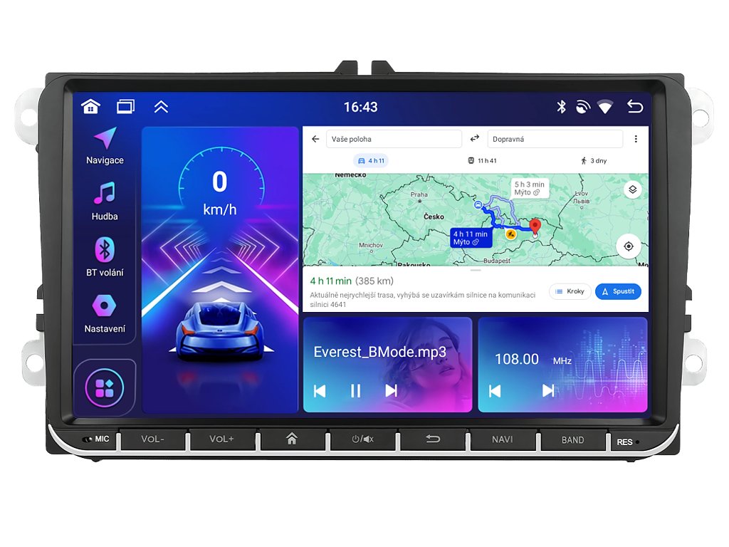 Autorádio Bmode BW59 Vám dokonale poslouží na kratších, ale i dlouhých cestách. Na první pohled zaujme moderní technologií CarPlay a AndroidAuto, které se starají o bezproblémové zrcadlení a ovládání telefonu na displeji autorádia. Propracovaná 9-palcová dotyková obrazovka zachycuje každý detail v HD rozlišení. Tím bezesporu zaujme spolujezdce při cestování. O vysoký výkon zařízení se stará čtyřjádrový / osmijádrový procesor s podporou 4 GB / 6 GB RAM. Nepostradatelný zvukový zážitek je zaručen zvukovým ekvalizérem, který umožňuje upravovat reprodukci dle chuti. Funkce Bluetooth Vám umožní pohodlné a bezpečné Handsfree volání a vyřizování důležitých hovorů. Pokud si občas nevíte rady se správnou cestou, můžete využít zabudovaného GPS modulu, který Vás přivede na tu správnou cestu. Pomocí Google obchodu si můžete stáhnout svou oblíbenou GPS navigaci. Pro bezpečné couvání můžete využít snadné propojení autorádia s parkovací kamerou. Autorádio nabízí možnost výběru z různých jazyků, které obsahují přeloženou základní část systému do českého jazyka.