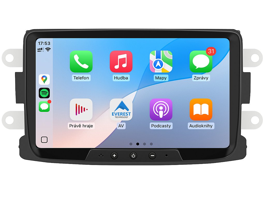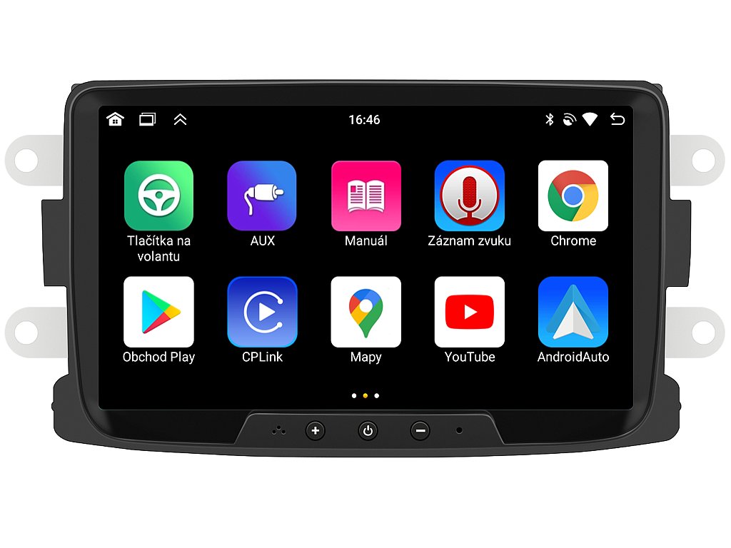 Autorádio Bmode BW76 pro Dacia, Renault Vám dokonale poslouží na kratších, ale i dlouhých cestách. Na první pohled zaujme moderní technologií CarPlay a AndroidAuto, které se starají o bezproblémové zrcadlení a ovládání telefonu na displeji autorádia. Propracovaná 8-palcová dotyková obrazovka zachycuje každý detail v HD rozlišení. Tím bezesporu zaujme spolujezdce při cestování. O vysoký výkon zařízení se stará čtyřjádrový procesor s podporou 4 GB RAM. Nepostradatelný zvukový zážitek je zaručen zvukovým ekvalizérem, který umožňuje upravovat reprodukci dle chuti. Funkce Bluetooth Vám umožní pohodlné a bezpečné Handsfree volání a vyřizování důležitých hovorů. Pokud si občas nevíte rady se správnou cestou, můžete využít zabudovaného GPS modulu, který Vás přivede na tu správnou cestu. Pomocí Google obchodu si můžete stáhnout svou oblíbenou GPS navigaci. Pro bezpečné couvání můžete využít snadné propojení autorádia s parkovací kamerou. Autorádio nabízí možnost výběru z různých jazyků, které obsahují přeloženou základní část systému do českého jazyka.