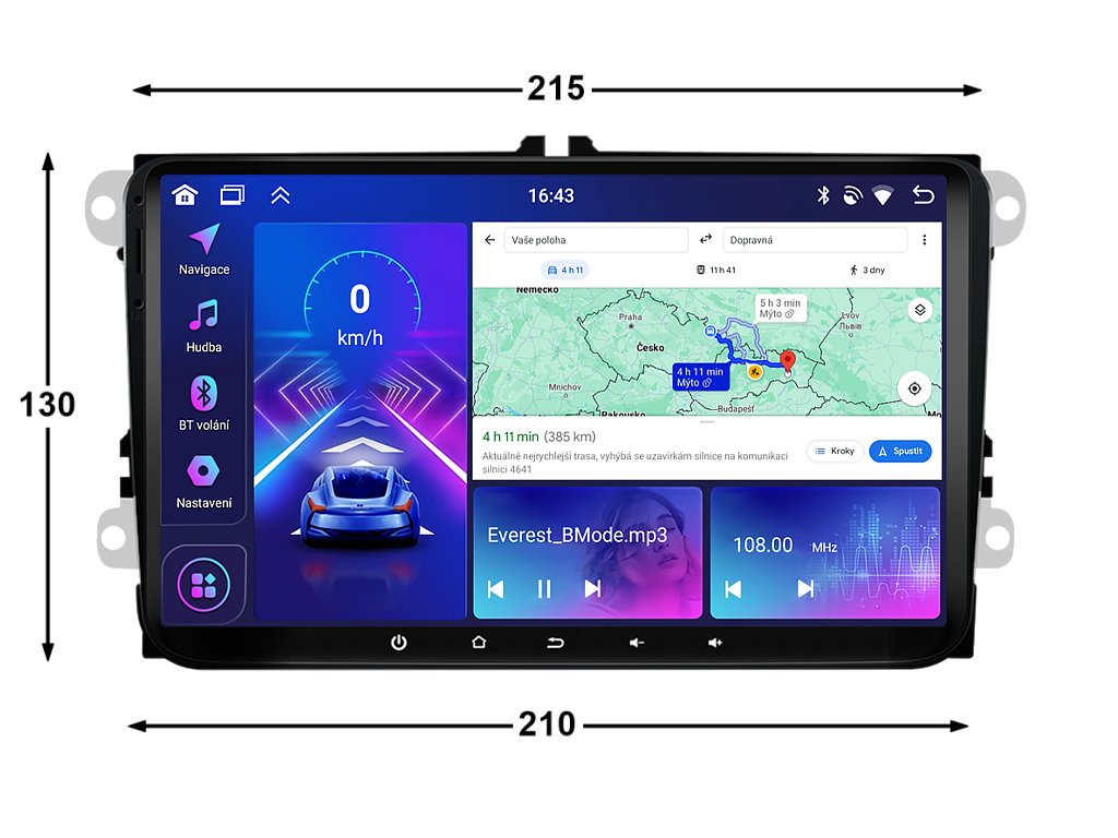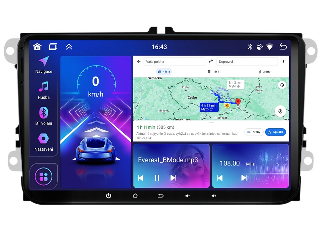 Autorádio Bmode BW89 Vám dokonale poslouží na kratších, ale i dlouhých cestách. Na první pohled zaujme moderní technologií CarPlay a AndroidAuto, které se starají o bezproblémové zrcadlení a ovládání telefonu na displeji autorádia. Propracovaná 9-palcová dotyková obrazovka zachycuje každý detail v HD rozlišení. Tím bezesporu zaujme spolujezdce při cestování. O vysoký výkon zařízení se stará čtyřjádrový procesor s podporou 4 GB RAM. Nepostradatelný zvukový zážitek je zaručen zvukovým ekvalizérem, který umožňuje upravovat reprodukci dle chuti. Funkce Bluetooth Vám umožní pohodlné a bezpečné Handsfree volání a vyřizování důležitých hovorů. Pokud si občas nevíte rady se správnou cestou, můžete využít zabudovaného GPS modulu, který Vás přivede na tu správnou cestu. Pomocí Google obchodu si můžete stáhnout svou oblíbenou GPS navigaci. Pro bezpečné couvání můžete využít snadné propojení autorádia s parkovací kamerou. Autorádio nabízí možnost výběru z různých jazyků, které obsahují přeloženou základní část systému do českého jazyka.
