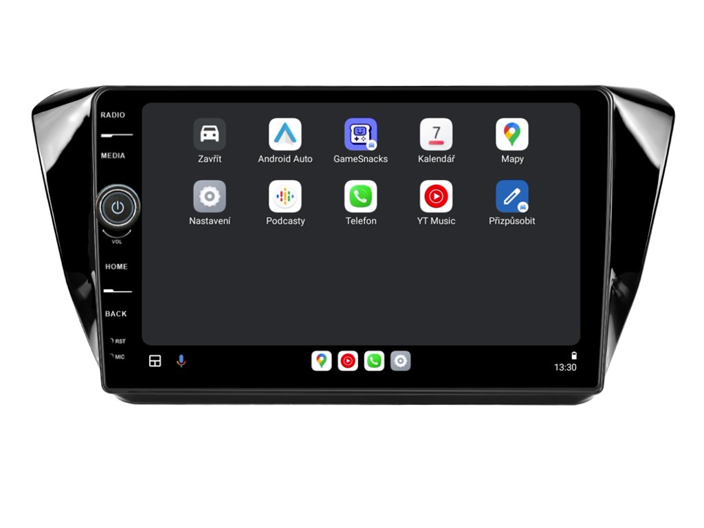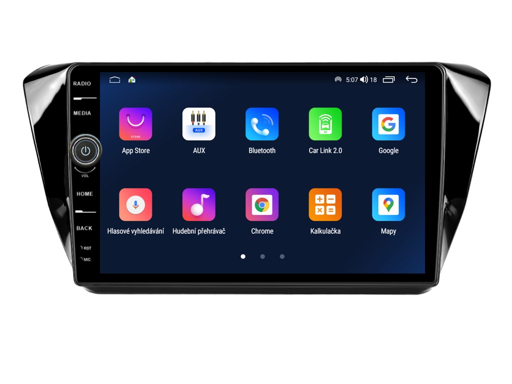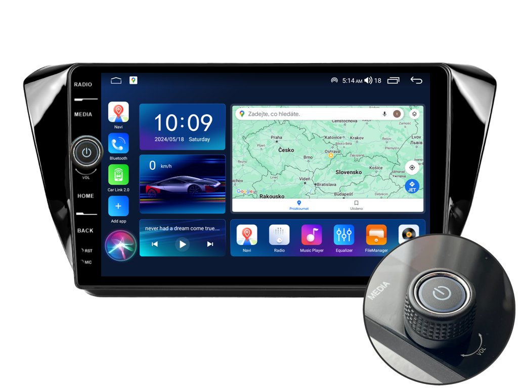2DIN autorádio Everest EVE07 pro Škoda Superb III nastavuje nové standardy ve světě multimediálních technologií. Na první pohled zaujme svou 10,1 palcovou QLED obrazovkou s neuvěřitelným rozlišením 1280 x 800. Lze na ní sledovat video i prohlížet fotografie s podporou Android aplikacemi. O špičkový výkon a plynulý běh aplikací se stará stabilní software s 8-jádrovým procesorem ve spolupráci se 6 GB RAM. Náročný posluchač jistě ocení funkci DSP neboli digitální signálový procesor, který násobně zvyšuje kvalitu reprodukce. Za pomocí 4G modulu se z Vašeho autorádia stane smartphone, ze kterého můžete hravě odesílat SMS zprávy, využívat online GPS navigaci s aktuální dopravní situací či využívat další cenné funkce. Váš mobilní telefon již zůstane navždy v kapse díky bezdrátové funkci CarPlay a Android Auto. Díky operačnímu systému Android 14 budete mít ve svém automobilu kompletní multimediální centrum přeplněné funkcemi a aplikacemi. Pohled z parkovací kamery Vám umožní bezpečné a ničím nerušené couvání. Autorádio nabízí možnost výběru z různých jazyků, které obsahují přeloženou základní část systému do českého jazyka.