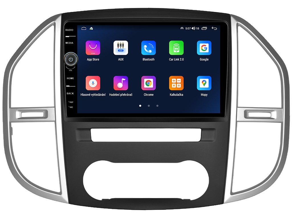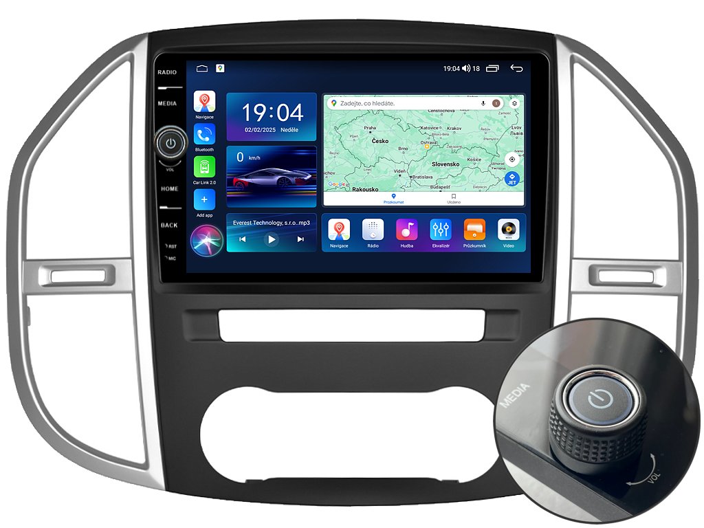 2DIN autorádio Everest EVE63 pro Mercedes-Benz Vito III nastavuje nové standardy ve světě multimediálních technologií. Na první pohled zaujme svou 10,1 palcovou QLED obrazovkou s neuvěřitelným rozlišením 1280 x 800. Lze na ní sledovat video i prohlížet fotografie s podporou Android aplikacemi. O špičkový výkon a plynulý běh aplikací se stará stabilní software s 8-jádrovým procesorem ve spolupráci se 6 GB RAM. Náročný posluchač jistě ocení funkci DSP neboli digitální signálový procesor, který násobně zvyšuje kvalitu reprodukce. Za pomocí 4G modulu se z Vašeho autorádia stane smartphone, ze kterého můžete hravě odesílat SMS zprávy, využívat online GPS navigaci s aktuální dopravní situací či využívat další cenné funkce. Váš mobilní telefon již zůstane navždy v kapse díky bezdrátové funkci CarPlay a Android Auto. Díky operačnímu systému Android 14 budete mít ve svém automobilu kompletní multimediální centrum přeplněné funkcemi a aplikacemi. Pohled z parkovací kamery Vám umožní bezpečné a ničím nerušené couvání. Autorádio nabízí možnost výběru z různých jazyků, které obsahují přeloženou základní část systému do českého jazyka.