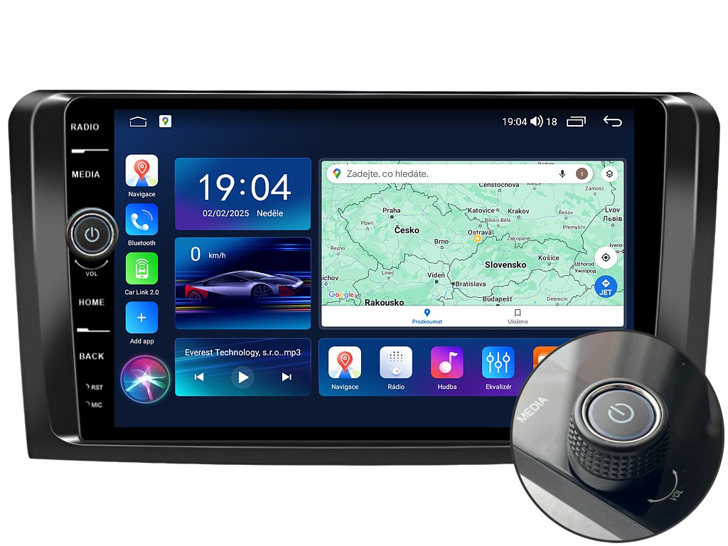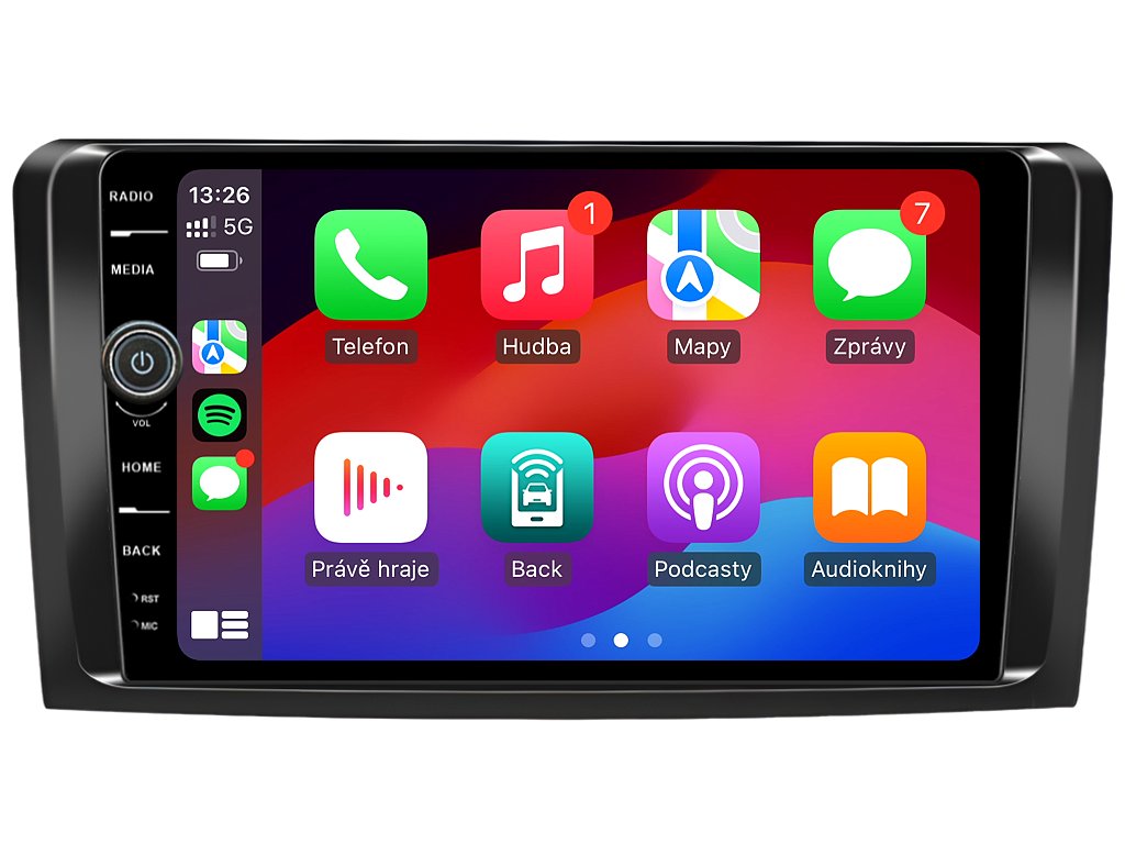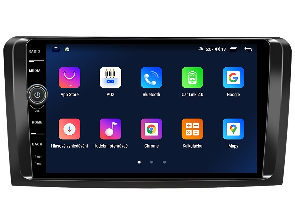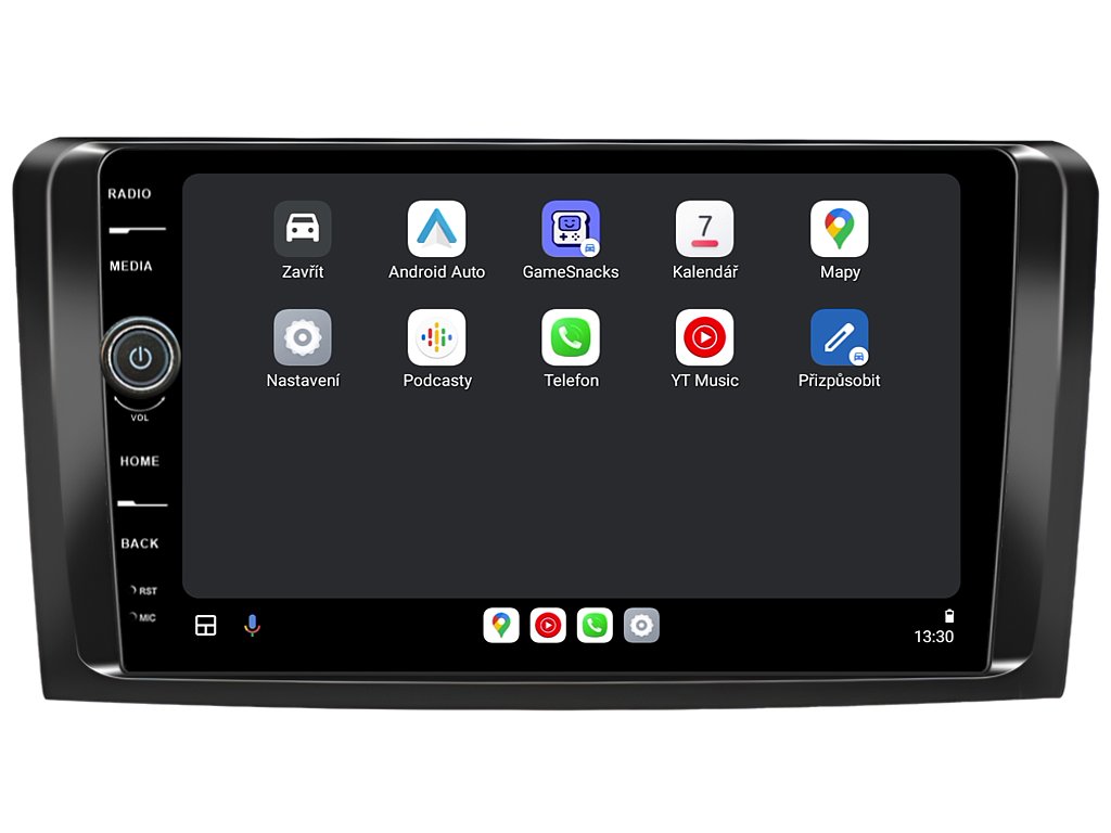 2DIN autorádio Everest EVE64 pro Mercedes-Benz ML nebo GL nastavuje nové standardy ve světě multimediálních technologií. Na první pohled zaujme svou 9 palcovou QLED obrazovkou s neuvěřitelným rozlišením 1280 x 800. Lze na ní sledovat video i prohlížet fotografie s podporou Android aplikacemi. O špičkový výkon a plynulý běh aplikací se stará stabilní software s 8-jádrovým procesorem ve spolupráci se 6 GB RAM. Náročný posluchač jistě ocení funkci DSP neboli digitální signálový procesor, který násobně zvyšuje kvalitu reprodukce. Za pomocí 4G modulu se z Vašeho autorádia stane smartphone, ze kterého můžete hravě odesílat SMS zprávy, využívat online GPS navigaci s aktuální dopravní situací či využívat další cenné funkce. Váš mobilní telefon již zůstane navždy v kapse díky bezdrátové funkci CarPlay a Android Auto. Díky operačnímu systému Android 14 budete mít ve svém automobilu kompletní multimediální centrum přeplněné funkcemi a aplikacemi. Pohled z parkovací kamery Vám umožní bezpečné a ničím nerušené couvání. Autorádio nabízí možnost výběru z různých jazyků, které obsahují přeloženou základní část systému do českého jazyka.