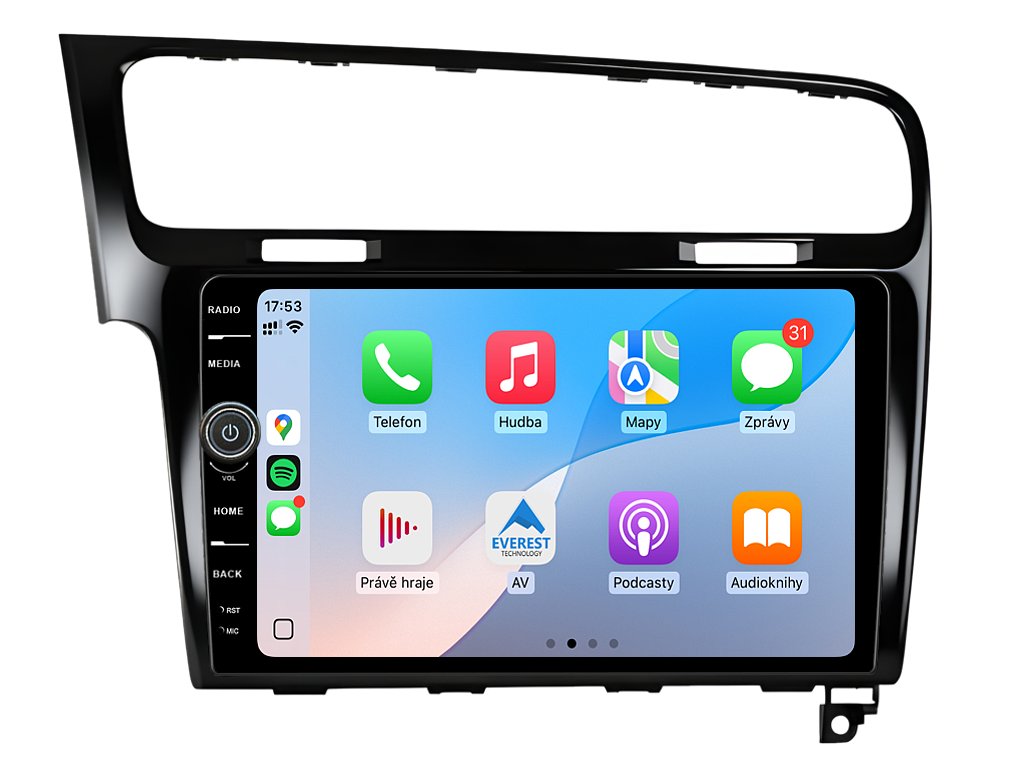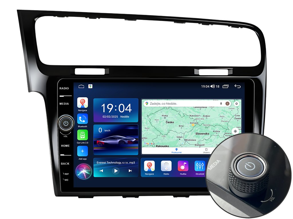 2DIN autorádio Everest EVE67 pro Volkswagen Golf VII nastavuje nové standardy ve světě multimediálních technologií. Na první pohled zaujme svou 10,1 palcovou QLED obrazovkou s neuvěřitelným rozlišením 1280 x 800. Lze na ní sledovat video i prohlížet fotografie s podporou Android aplikacemi. O špičkový výkon a plynulý běh aplikací se stará stabilní software s 8-jádrovým procesorem ve spolupráci se 6 GB RAM. Náročný posluchač jistě ocení funkci DSP neboli digitální signálový procesor, který násobně zvyšuje kvalitu reprodukce. Za pomocí 4G modulu se z Vašeho autorádia stane smartphone, ze kterého můžete hravě odesílat SMS zprávy, využívat online GPS navigaci s aktuální dopravní situací či využívat další cenné funkce. Váš mobilní telefon již zůstane navždy v kapse díky bezdrátové funkci CarPlay a Android Auto. Díky operačnímu systému Android 14 budete mít ve svém automobilu kompletní multimediální centrum přeplněné funkcemi a aplikacemi. Pohled z parkovací kamery Vám umožní bezpečné a ničím nerušené couvání. Autorádio nabízí možnost výběru z různých jazyků, které obsahují přeloženou základní část systému do českého jazyka.