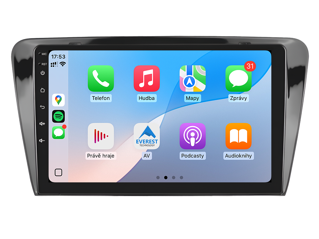 2DIN autorádio Everest EVT03 pro Škoda Octavia III nastavuje nové standardy ve světě multimediálních technologií. Na první pohled zaujme svou 10,1 palcovou QLED obrazovkou s neuvěřitelným rozlišením 1280 x 800. Lze na ní sledovat video i prohlížet fotografie s podporou Android aplikacemi. O špičkový výkon a plynulý běh aplikací se stará stabilní software s 8-jádrovým procesorem ve spolupráci se 6 GB RAM. Náročný posluchač jistě ocení funkci DSP neboli digitální signálový procesor, který násobně zvyšuje kvalitu reprodukce. Za pomocí 4G modulu se z Vašeho autorádia stane smartphone, ze kterého můžete hravě odesílat SMS zprávy, využívat online GPS navigaci s aktuální dopravní situací či využívat další cenné funkce. Váš mobilní telefon již zůstane navždy v kapse díky bezdrátové funkci CarPlay a Android Auto. Díky operačnímu systému Android 15 budete mít ve svém automobilu kompletní multimediální centrum přeplněné funkcemi a aplikacemi. Pohled z parkovací kamery Vám umožní bezpečné a ničím nerušené couvání. Autorádio nabízí možnost výběru z různých jazyků, které obsahují přeloženou základní část systému do českého jazyka.