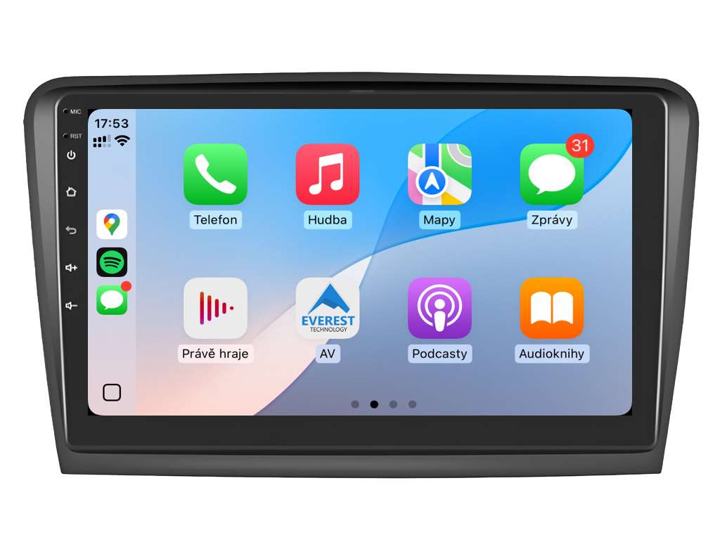 2DIN autorádio Everest EVT04 pro Škoda Superb II nastavuje nové standardy ve světě multimediálních technologií. Na první pohled zaujme svou 10,1 palcovou QLED obrazovkou s neuvěřitelným rozlišením 1280 x 800. Lze na ní sledovat video i prohlížet fotografie s podporou Android aplikacemi. O špičkový výkon a plynulý běh aplikací se stará stabilní software s 8-jádrovým procesorem ve spolupráci se 6 GB RAM. Náročný posluchač jistě ocení funkci DSP neboli digitální signálový procesor, který násobně zvyšuje kvalitu reprodukce. Za pomocí 4G modulu se z Vašeho autorádia stane smartphone, ze kterého můžete hravě odesílat SMS zprávy, využívat online GPS navigaci s aktuální dopravní situací či využívat další cenné funkce. Váš mobilní telefon již zůstane navždy v kapse díky bezdrátové funkci CarPlay a Android Auto. Díky operačnímu systému Android 15 budete mít ve svém automobilu kompletní multimediální centrum přeplněné funkcemi a aplikacemi. Pohled z parkovací kamery Vám umožní bezpečné a ničím nerušené couvání. Autorádio nabízí možnost výběru z různých jazyků, které obsahují přeloženou základní část systému do českého jazyka.