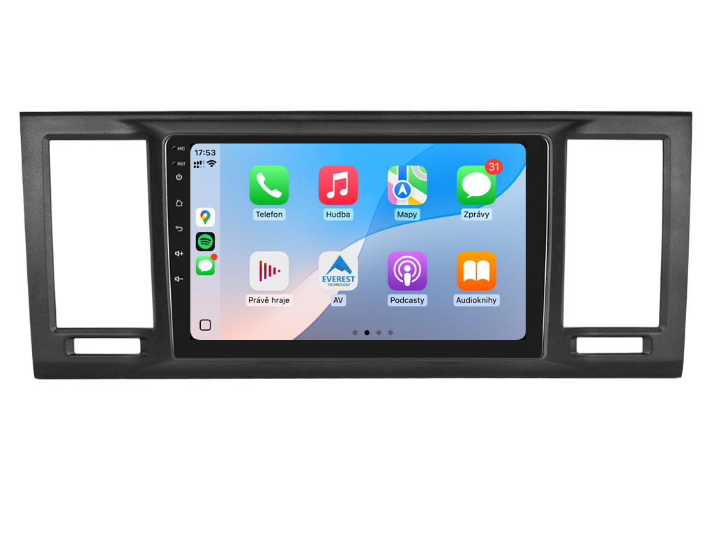 2DIN autorádio Everest EVT17 pro Volkswagen Transporter T6, Multivan T6 či Caravelle T6 nastavuje nové standardy ve světě multimediálních technologií. Na první pohled zaujme svou 9 palcovou QLED obrazovkou s neuvěřitelným rozlišením 1280 x 800. Lze na ní sledovat video i prohlížet fotografie s podporou Android aplikacemi. O špičkový výkon a plynulý běh aplikací se stará stabilní software s 8-jádrovým procesorem ve spolupráci se 6 GB RAM. Náročný posluchač jistě ocení funkci DSP neboli digitální signálový procesor, který násobně zvyšuje kvalitu reprodukce. Za pomocí 4G modulu se z Vašeho autorádia stane smartphone, ze kterého můžete hravě odesílat SMS zprávy, využívat online GPS navigaci s aktuální dopravní situací či využívat další cenné funkce. Váš mobilní telefon již zůstane navždy v kapse díky bezdrátové funkci CarPlay a Android Auto. Díky operačnímu systému Android 15 budete mít ve svém automobilu kompletní multimediální centrum přeplněné funkcemi a aplikacemi. Pohled z parkovací kamery Vám umožní bezpečné a ničím nerušené couvání. Autorádio nabízí možnost výběru z různých jazyků, které obsahují přeloženou základní část systému do českého jazyka.