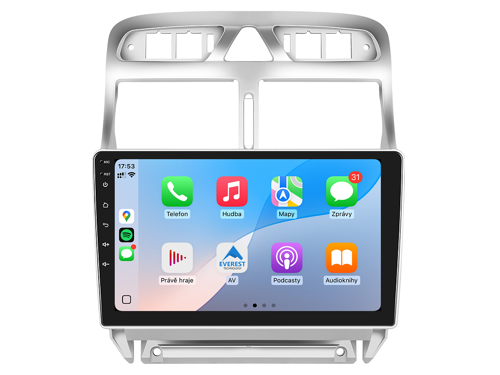 2DIN autorádio Everest EVT46 pro Peugeot 307 nastavuje nové standardy ve světě multimediálních technologií. Na první pohled zaujme svou 9 palcovou QLED obrazovkou s neuvěřitelným rozlišením 1280 x 800. Lze na ní sledovat video i prohlížet fotografie s podporou Android aplikacemi. O špičkový výkon a plynulý běh aplikací se stará stabilní software s 8-jádrovým procesorem ve spolupráci se 6 GB RAM. Náročný posluchač jistě ocení funkci DSP neboli digitální signálový procesor, který násobně zvyšuje kvalitu reprodukce. Za pomocí 4G modulu se z Vašeho autorádia stane smartphone, ze kterého můžete hravě odesílat SMS zprávy, využívat online GPS navigaci s aktuální dopravní situací či využívat další cenné funkce. Váš mobilní telefon již zůstane navždy v kapse díky bezdrátové funkci CarPlay a Android Auto. Díky operačnímu systému Android 15 budete mít ve svém automobilu kompletní multimediální centrum přeplněné funkcemi a aplikacemi. Pohled z parkovací kamery Vám umožní bezpečné a ničím nerušené couvání. Autorádio nabízí možnost výběru z různých jazyků, které obsahují přeloženou základní část systému do českého jazyka.