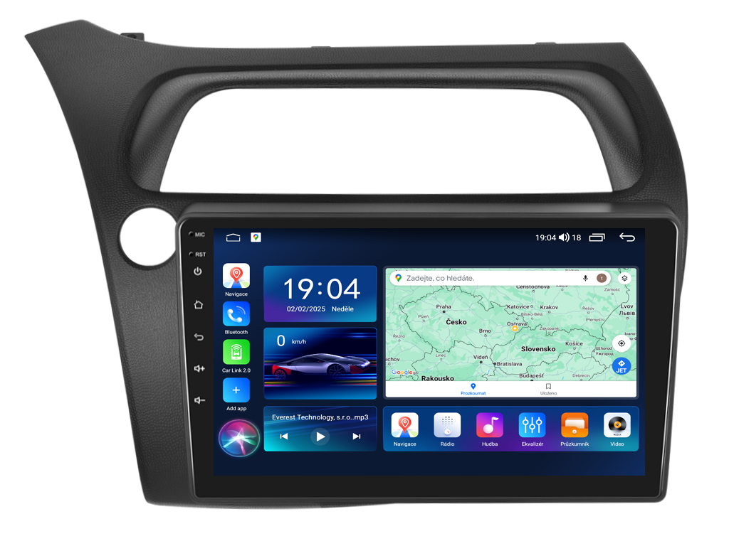 2DIN autorádio Everest EVT51 pro Honda Civic 8G nastavuje nové standardy ve světě multimediálních technologií. Na první pohled zaujme svou 9 palcovou QLED obrazovkou s neuvěřitelným rozlišením 1280 x 800. Lze na ní sledovat video i prohlížet fotografie s podporou Android aplikacemi. O špičkový výkon a plynulý běh aplikací se stará stabilní software s 8-jádrovým procesorem ve spolupráci se 6 GB RAM. Náročný posluchač jistě ocení funkci DSP neboli digitální signálový procesor, který násobně zvyšuje kvalitu reprodukce. Za pomocí 4G modulu se z Vašeho autorádia stane smartphone, ze kterého můžete hravě odesílat SMS zprávy, využívat online GPS navigaci s aktuální dopravní situací či využívat další cenné funkce. Váš mobilní telefon již zůstane navždy v kapse díky bezdrátové funkci CarPlay a Android Auto. Díky operačnímu systému Android 15 budete mít ve svém automobilu kompletní multimediální centrum přeplněné funkcemi a aplikacemi. Pohled z parkovací kamery Vám umožní bezpečné a ničím nerušené couvání. Autorádio nabízí možnost výběru z různých jazyků, které obsahují přeloženou základní část systému do českého jazyka.