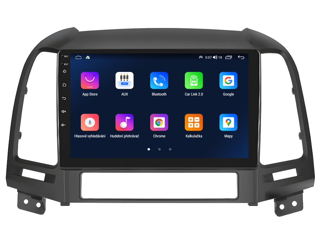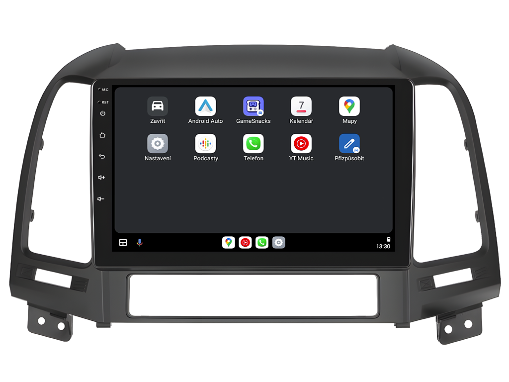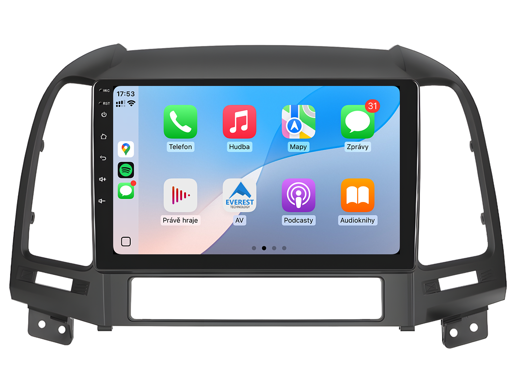 2DIN autorádio Everest EVT54 pro Hyundai Santa Fe II nastavuje nové standardy ve světě multimediálních technologií. Na první pohled zaujme svou 9 palcovou QLED obrazovkou s neuvěřitelným rozlišením 1280 x 800. Lze na ní sledovat video i prohlížet fotografie s podporou Android aplikacemi. O špičkový výkon a plynulý běh aplikací se stará stabilní software s 8-jádrovým procesorem ve spolupráci se 6 GB RAM. Náročný posluchač jistě ocení funkci DSP neboli digitální signálový procesor, který násobně zvyšuje kvalitu reprodukce. Za pomocí 4G modulu se z Vašeho autorádia stane smartphone, ze kterého můžete hravě odesílat SMS zprávy, využívat online GPS navigaci s aktuální dopravní situací či využívat další cenné funkce. Váš mobilní telefon již zůstane navždy v kapse díky bezdrátové funkci CarPlay a Android Auto. Díky operačnímu systému Android 15 budete mít ve svém automobilu kompletní multimediální centrum přeplněné funkcemi a aplikacemi. Pohled z parkovací kamery Vám umožní bezpečné a ničím nerušené couvání. Autorádio nabízí možnost výběru z různých jazyků, které obsahují přeloženou základní část systému do českého jazyka.