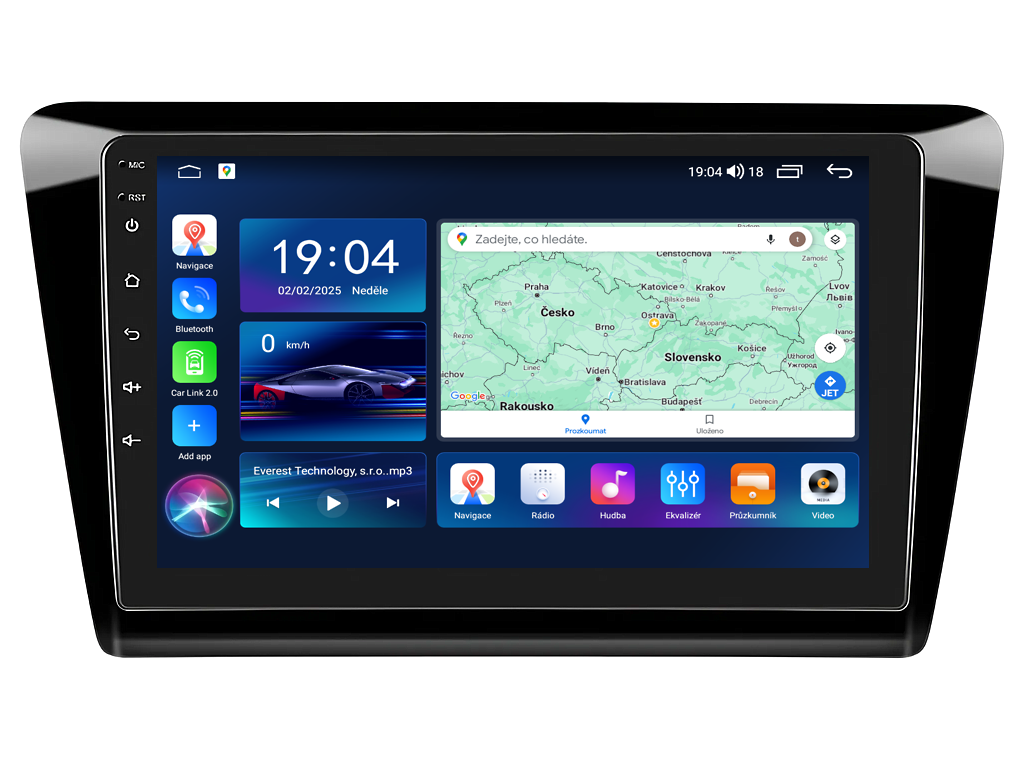 2DIN autorádio Everest EVT58 pro Škoda Rapid nastavuje nové standardy ve světě multimediálních technologií. Na první pohled zaujme svou 9 palcovou QLED obrazovkou s neuvěřitelným rozlišením 1280 x 800. Lze na ní sledovat video i prohlížet fotografie s podporou Android aplikacemi. O špičkový výkon a plynulý běh aplikací se stará stabilní software s 8-jádrovým procesorem ve spolupráci se 6 GB RAM. Náročný posluchač jistě ocení funkci DSP neboli digitální signálový procesor, který násobně zvyšuje kvalitu reprodukce. Za pomocí 4G modulu se z Vašeho autorádia stane smartphone, ze kterého můžete hravě odesílat SMS zprávy, využívat online GPS navigaci s aktuální dopravní situací či využívat další cenné funkce. Váš mobilní telefon již zůstane navždy v kapse díky bezdrátové funkci CarPlay a Android Auto. Díky operačnímu systému Android 15 budete mít ve svém automobilu kompletní multimediální centrum přeplněné funkcemi a aplikacemi. Pohled z parkovací kamery Vám umožní bezpečné a ničím nerušené couvání. Autorádio nabízí možnost výběru z různých jazyků, které obsahují přeloženou základní část systému do českého jazyka.