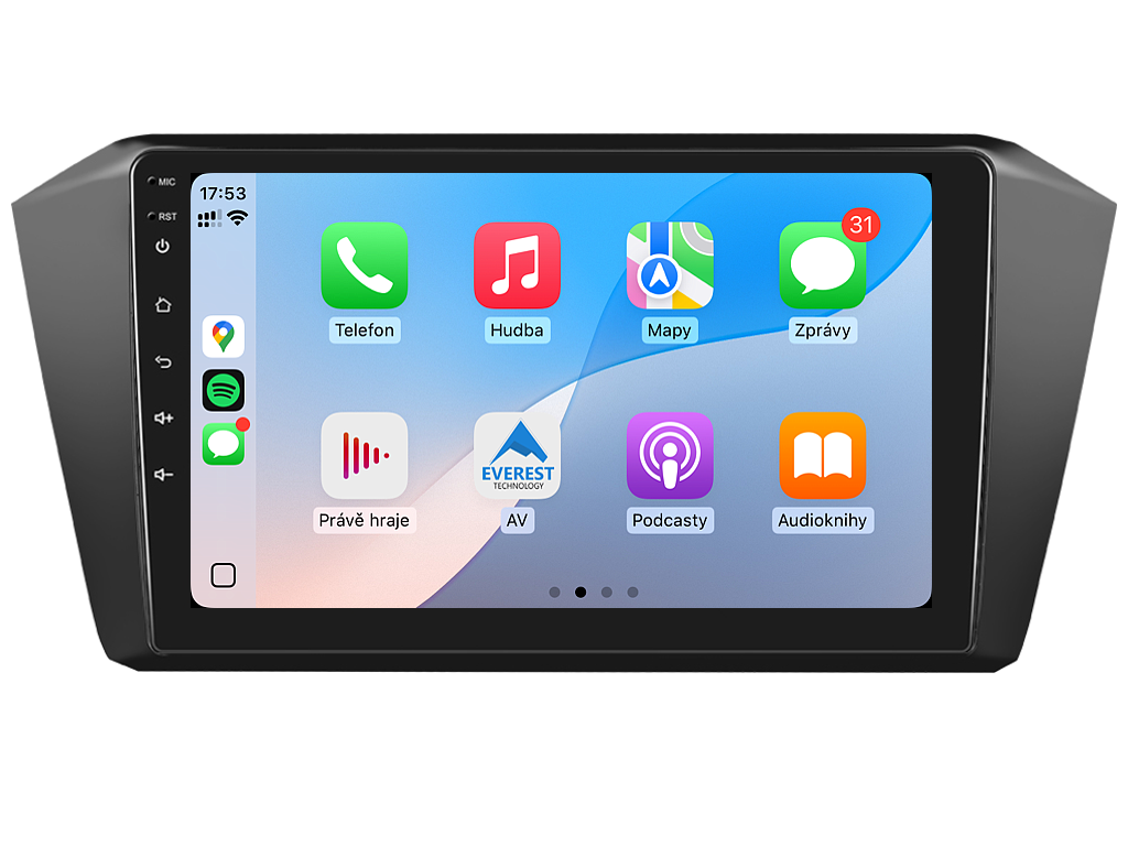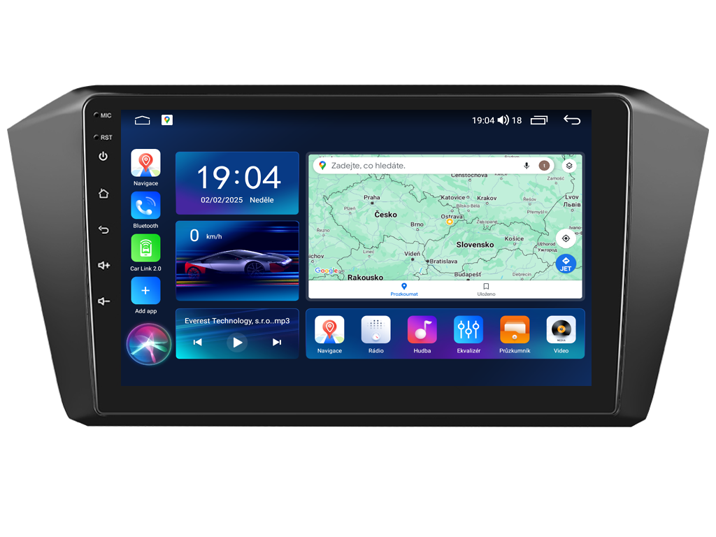2DIN autorádio Everest EVT60 pro Volkswagen Passat B8 nastavuje nové standardy ve světě multimediálních technologií. Na první pohled zaujme svou 10,1 palcovou QLED obrazovkou s neuvěřitelným rozlišením 1280 x 800. Lze na ní sledovat video i prohlížet fotografie s podporou Android aplikacemi. O špičkový výkon a plynulý běh aplikací se stará stabilní software s 8-jádrovým procesorem ve spolupráci se 6 GB RAM. Náročný posluchač jistě ocení funkci DSP neboli digitální signálový procesor, který násobně zvyšuje kvalitu reprodukce. Za pomocí 4G modulu se z Vašeho autorádia stane smartphone, ze kterého můžete hravě odesílat SMS zprávy, využívat online GPS navigaci s aktuální dopravní situací či využívat další cenné funkce. Váš mobilní telefon již zůstane navždy v kapse díky bezdrátové funkci CarPlay a Android Auto. Díky operačnímu systému Android 15 budete mít ve svém automobilu kompletní multimediální centrum přeplněné funkcemi a aplikacemi. Pohled z parkovací kamery Vám umožní bezpečné a ničím nerušené couvání. Autorádio nabízí možnost výběru z různých jazyků, které obsahují přeloženou základní část systému do českého jazyka.