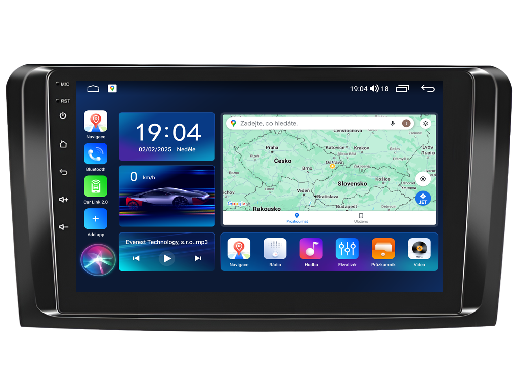 2DIN autorádio Everest EVT64 pro Mercedes-Benz ML nebo GL nastavuje nové standardy ve světě multimediálních technologií. Na první pohled zaujme svou 9 palcovou QLED obrazovkou s neuvěřitelným rozlišením 1280 x 800. Lze na ní sledovat video i prohlížet fotografie s podporou Android aplikacemi. O špičkový výkon a plynulý běh aplikací se stará stabilní software s 8-jádrovým procesorem ve spolupráci se 6 GB RAM. Náročný posluchač jistě ocení funkci DSP neboli digitální signálový procesor, který násobně zvyšuje kvalitu reprodukce. Za pomocí 4G modulu se z Vašeho autorádia stane smartphone, ze kterého můžete hravě odesílat SMS zprávy, využívat online GPS navigaci s aktuální dopravní situací či využívat další cenné funkce. Váš mobilní telefon již zůstane navždy v kapse díky bezdrátové funkci CarPlay a Android Auto. Díky operačnímu systému Android 15 budete mít ve svém automobilu kompletní multimediální centrum přeplněné funkcemi a aplikacemi. Pohled z parkovací kamery Vám umožní bezpečné a ničím nerušené couvání. Autorádio nabízí možnost výběru z různých jazyků, které obsahují přeloženou základní část systému do českého jazyka.