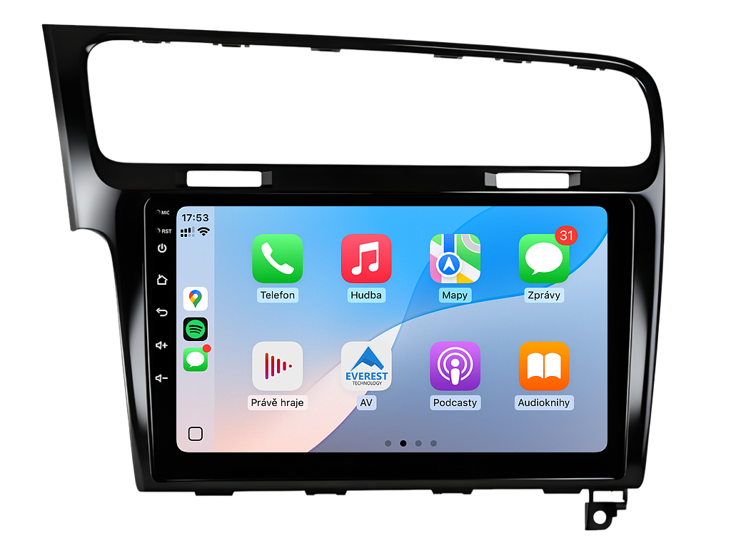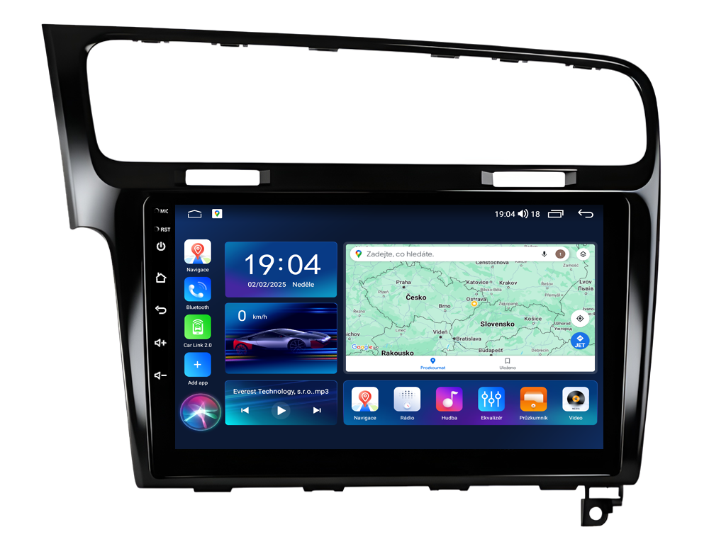 2DIN autorádio Everest EVT67 pro Volkswagen Golf VII nastavuje nové standardy ve světě multimediálních technologií. Na první pohled zaujme svou 10,1 palcovou QLED obrazovkou s neuvěřitelným rozlišením 1280 x 800. Lze na ní sledovat video i prohlížet fotografie s podporou Android aplikacemi. O špičkový výkon a plynulý běh aplikací se stará stabilní software s 8-jádrovým procesorem ve spolupráci se 6 GB RAM. Náročný posluchač jistě ocení funkci DSP neboli digitální signálový procesor, který násobně zvyšuje kvalitu reprodukce. Za pomocí 4G modulu se z Vašeho autorádia stane smartphone, ze kterého můžete hravě odesílat SMS zprávy, využívat online GPS navigaci s aktuální dopravní situací či využívat další cenné funkce. Váš mobilní telefon již zůstane navždy v kapse díky bezdrátové funkci CarPlay a Android Auto. Díky operačnímu systému Android 15 budete mít ve svém automobilu kompletní multimediální centrum přeplněné funkcemi a aplikacemi. Pohled z parkovací kamery Vám umožní bezpečné a ničím nerušené couvání. Autorádio nabízí možnost výběru z různých jazyků, které obsahují přeloženou základní část systému do českého jazyka.