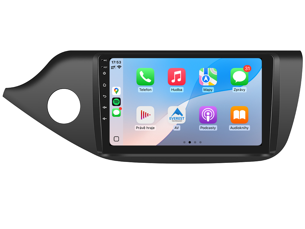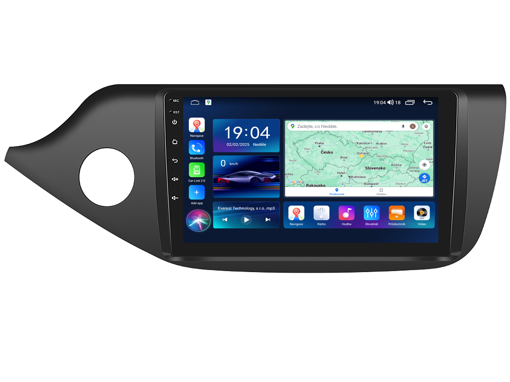 2DIN autorádio Everest EVT71 pro Kia Ceed II nastavuje nové standardy ve světě multimediálních technologií. Na první pohled zaujme svou 9 palcovou QLED obrazovkou s neuvěřitelným rozlišením 1280 x 800. Lze na ní sledovat video i prohlížet fotografie s podporou Android aplikacemi. O špičkový výkon a plynulý běh aplikací se stará stabilní software s 8-jádrovým procesorem ve spolupráci se 6 GB RAM. Náročný posluchač jistě ocení funkci DSP neboli digitální signálový procesor, který násobně zvyšuje kvalitu reprodukce. Za pomocí 4G modulu se z Vašeho autorádia stane smartphone, ze kterého můžete hravě odesílat SMS zprávy, využívat online GPS navigaci s aktuální dopravní situací či využívat další cenné funkce. Váš mobilní telefon již zůstane navždy v kapse díky bezdrátové funkci CarPlay a Android Auto. Díky operačnímu systému Android 15 budete mít ve svém automobilu kompletní multimediální centrum přeplněné funkcemi a aplikacemi. Pohled z parkovací kamery Vám umožní bezpečné a ničím nerušené couvání. Autorádio nabízí možnost výběru z různých jazyků, které obsahují přeloženou základní část systému do českého jazyka.