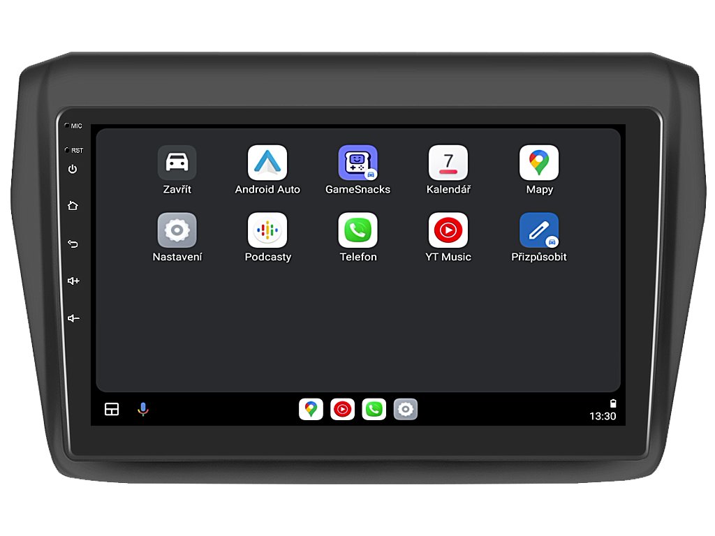 S 2DIN autorádiem Isudar T72-IEV132 QLED pro Suzuki Swift III (Gen 5) máte svět hudby, zábavy a informací doslova na dosah ruky. Hlavním rysem je bezesporu přehledná 9 palcová QLED obrazovka s neuvěřitelným rozlišením 1280 x 720. Lze na ní sledovat video i prohlížet fotografie s podporou Android aplikacemi. O špičkový výkon a plynulý běh aplikací se stará 8-jádrový procesor ve spolupráci se 4 GB RAM. Náročný posluchač jistě ocení funkci DSP neboli digitální signálový procesor, který násobně zvyšuje kvalitu reprodukce. Za pomocí 4G modulu se z Vašeho autorádia stane smartphone, ze kterého můžete hravě odesílat SMS zprávy, využívat online GPS navigaci s aktuální dopravní situací či využívat další cenné funkce. Váš mobilní telefon již zůstane navždy v kapse díky funkci CarPlay a Android Auto. Díky operačnímu systému Android 12 budete mít ve svém automobilu kompletní multimediální centrum přeplněné funkcemi a aplikacemi. Pohled z parkovací kamery Vám umožní bezpečné a ničím nerušené couvání. Autorádio nabízí možnost výběru z různých jazyků, které obsahují přeloženou základní část systému do českého jazyka.