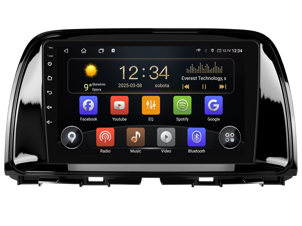 S 2DIN autorádiem Isudar T72-IEV143 QLED pro Mazda CX-5 máte svět hudby, zábavy a informací doslova na dosah ruky. Hlavním rysem je bezesporu přehledná 9 palcová QLED obrazovka s neuvěřitelným rozlišením 1280 x 720. Lze na ní sledovat video i prohlížet fotografie s podporou Android aplikacemi. O špičkový výkon a plynulý běh aplikací se stará 8-jádrový procesor ve spolupráci se 4 GB RAM. Náročný posluchač jistě ocení funkci DSP neboli digitální signálový procesor, který násobně zvyšuje kvalitu reprodukce. Za pomocí 4G modulu se z Vašeho autorádia stane smartphone, ze kterého můžete hravě odesílat SMS zprávy, využívat online GPS navigaci s aktuální dopravní situací či využívat další cenné funkce. Váš mobilní telefon již zůstane navždy v kapse díky funkci CarPlay a Android Auto. Díky operačnímu systému Android 12 budete mít ve svém automobilu kompletní multimediální centrum přeplněné funkcemi a aplikacemi. Pohled z parkovací kamery Vám umožní bezpečné a ničím nerušené couvání. Autorádio nabízí možnost výběru z různých jazyků, které obsahují přeloženou základní část systému do českého jazyka.