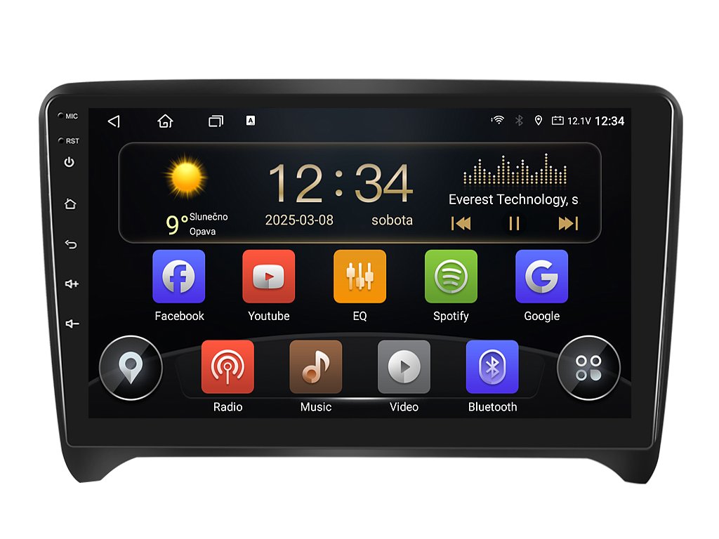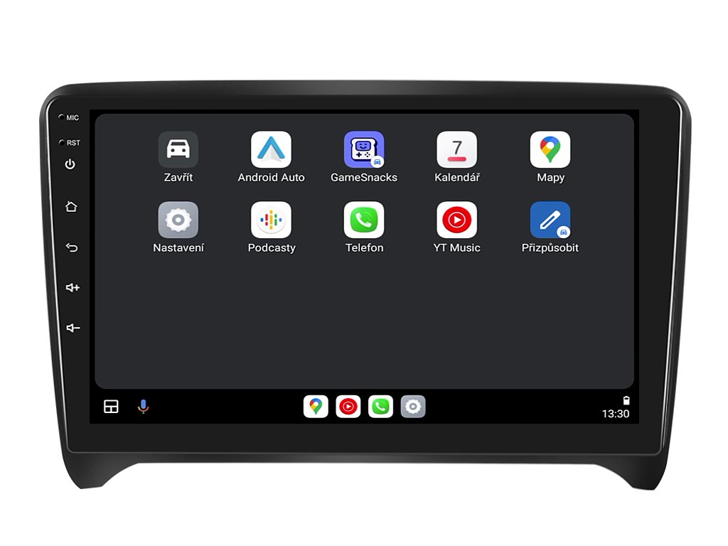 S 2DIN autorádiem Isudar T75-IEV79 QLED pro Audi TT máte svět hudby, zábavy a informací doslova na dosah ruky. Hlavním rysem je bezesporu přehledná 9 palcová QLED obrazovka s neuvěřitelným rozlišením 1280 x 720. Lze na ní sledovat video i prohlížet fotografie s podporou Android aplikacemi. O špičkový výkon a plynulý běh aplikací se stará 8-jádrový procesor ve spolupráci se 8 GB RAM. Náročný posluchač jistě ocení funkci DSP neboli digitální signálový procesor, který násobně zvyšuje kvalitu reprodukce. Za pomocí 4G modulu se z Vašeho autorádia stane smartphone, ze kterého můžete hravě odesílat SMS zprávy, využívat online GPS navigaci s aktuální dopravní situací či využívat další cenné funkce. Váš mobilní telefon již zůstane navždy v kapse díky funkci CarPlay a Android Auto. Díky operačnímu systému Android 14 budete mít ve svém automobilu kompletní multimediální centrum přeplněné funkcemi a aplikacemi. Pohled z parkovací kamery Vám umožní bezpečné a ničím nerušené couvání. Autorádio nabízí možnost výběru z různých jazyků, které obsahují přeloženou základní část systému do českého jazyka.