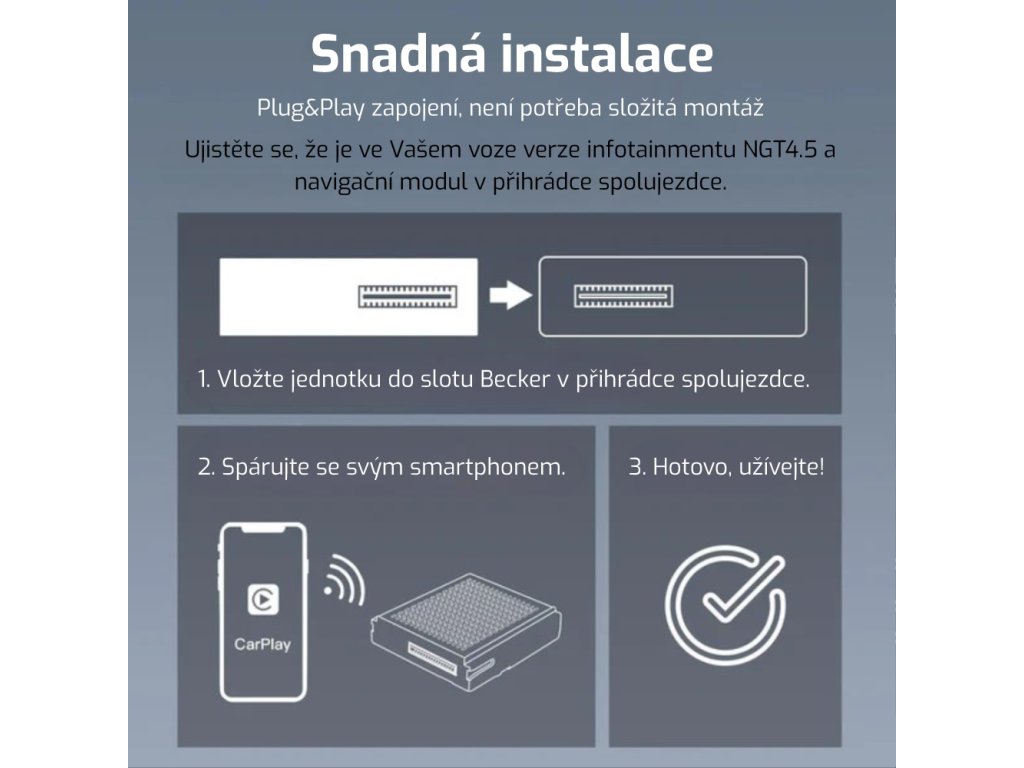 Jste spokojeni se svým originálním chytrým rádiem, ale chybí Vám možnost připojit telefon pomocí CarPlay a Android Auto? Právě tento produkt Vám trable usnadní. Dnes už není třeba kupovat nové autorádio kvůli moderním funkcím.