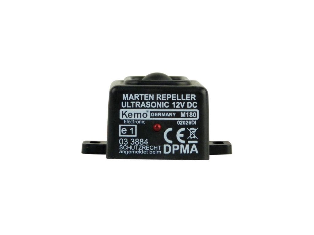 Ultrazvukový odpuzovač M180 vytváří ultrazvukové signály, které jsou velmi nepříjemné pro drobné automobilové škůdce. Odpuzovač M180 působí především na kuny, lasičky a drobné hlodavce. Chrání tak kabely, a zejména izolační materiály umístěné v motorovém prostoru automobilu před zničením. Přístroj M180 je určen pro napájení z autobaterie, nicméně je možné jej napájet i ze síťového adaptéru. To umožňuje všestranné využití například na zahradě či v garáži. Uvnitř je vybavený ultrazvukovou hlavičkou polosférického tvaru, která vysílá nepravidelný ultrazvukový signál v rozsahu 23 kHz v neuvěřitelném širokém úhlu 160°. Díky měnícím se signálům se již nestane fakt, že si na signál hlodavec či kuna zvykne.