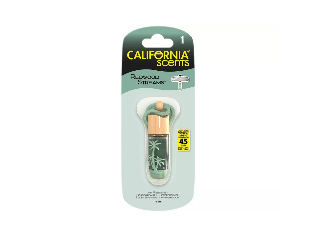 Vůně California Scents jsou osvědčené osvěžovače vzduchu s koncentrovanou a jemnou vůní. Vůně jsou 100% organické. Stačí zavěsit praktickou lahvičku Hanging Vial na zpětné zrcátko a ihned si můžete užívat osvěžující vůni celé měsíce. Díky decentnímu vzhledu lahvičky bude vzhled Vašeho interiéru dokonalý. Všechny produkty California Scents jsou "made in California"!