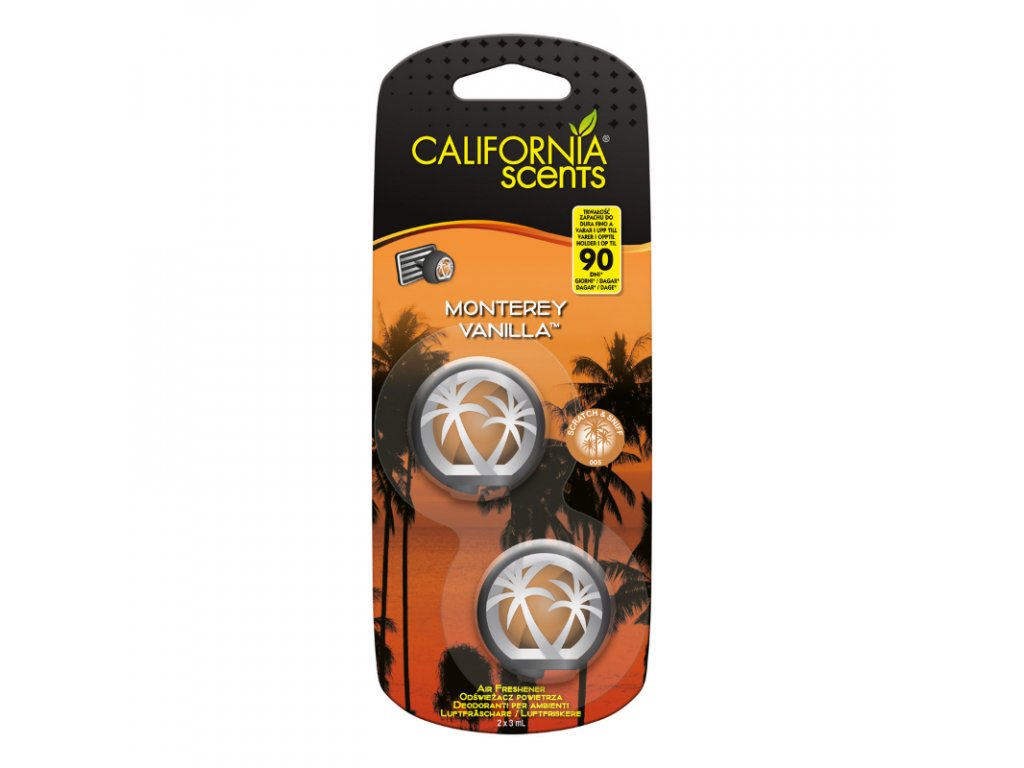 Vůně California Scents jsou osvědčené osvěžovače vzduchu s koncentrovanou a jemnou vůní. Vůně jsou 100% organické. Stačí umístit Mini Diffuser do ventilační mřížky a ihned si můžete užívat osvěžující vůni celé měsíce. Díky decentnímu vzhledu difuzéru bude vzhled Vašeho interiéru dokonalý. Všechny produkty California Scents jsou "made in California"!