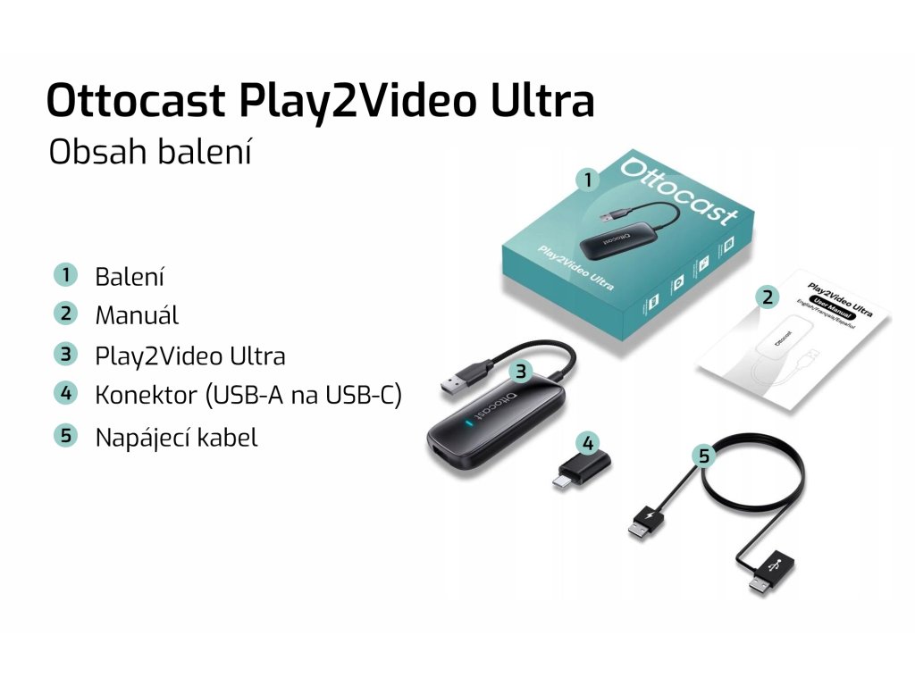 Ottocast Play2Video Ultra - Multimediální adaptér - bezdrátový CarPlay / Android Auto