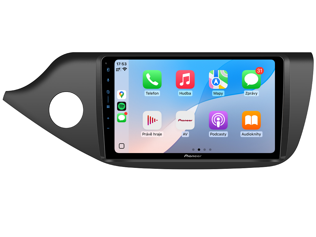 Proměňte každou jízdu automobilem v jedinečný zážitek s autorádiem Pioneer SPH-PF97BT pro Kia Ceed II. Tento moderní multimediální systém se pyšní velkým 9" dotykovým displejem s intuitivním ovládáním, které vám poskytne snadný přístup ke všem funkcím. Apple CarPlay a Android Auto zajišťují bezproblémové propojení s vaším chytrým telefonem, takže můžete pohodlně používat navigaci, přehrávat hudbu nebo vyřizovat hovory prostřednictvím Bluetooth Handsfree. Díky pokročilému DSP (Digital Signal Processor) ekvalizéru si užijete dokonalý zvukový zážitek, ať už posloucháte oblíbenou hudbu nebo sledujete video. Bezdrátové připojení umožňuje rychlé streamování a přístup k online službám. Pokud často parkujete ve stísněných prostorech, oceníte možnost připojení couvací kamery, která vám usnadní manévrování. Elegantní design a široká kompatibilita dělají z Pioneer ideální volbu pro každého, kdo hledá špičkové autorádio s nejmodernějšími technologiemi.