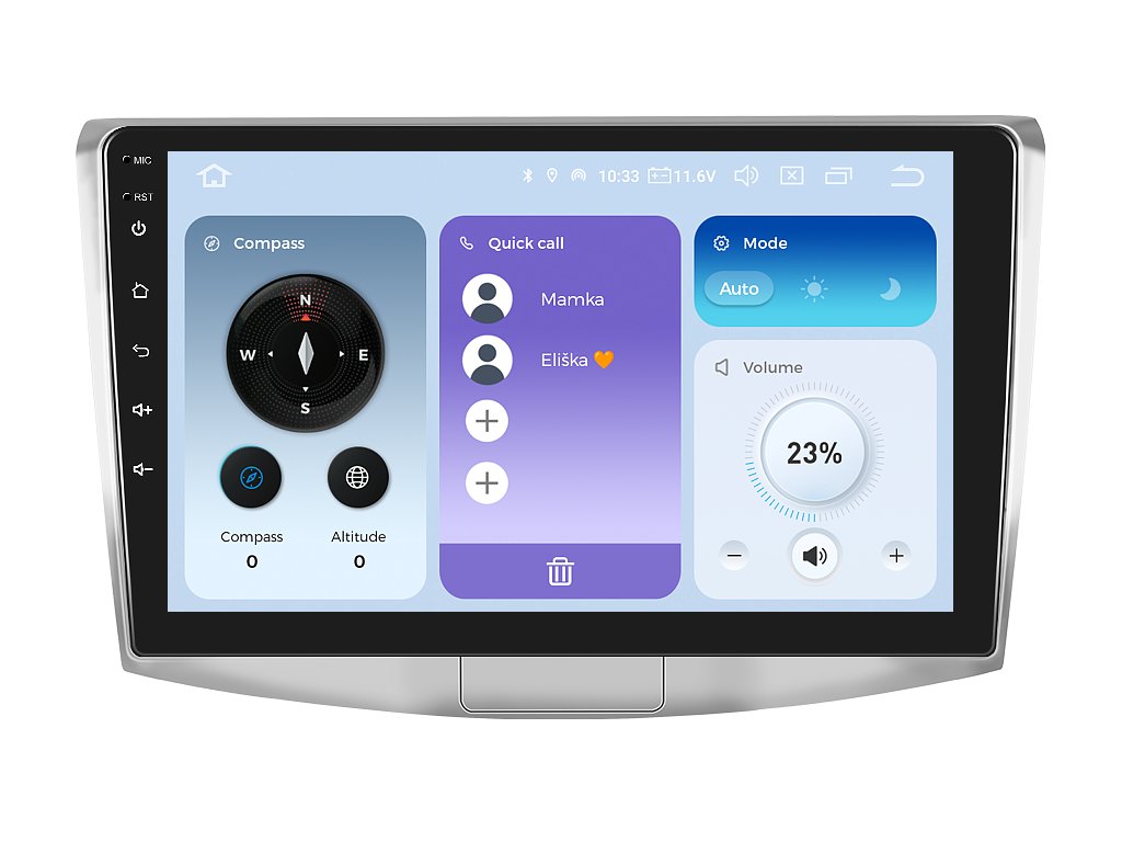 Obrovský displej autorádia je zaměřen na dokonalost a maximální přehled během cestování. Rozlišení rádia je v HD rozlišení s uhlopříčkou o neuvěřitelných 10,1 palců což je v přepočtu 26 cm. Díky velikosti obrazovky se autorádio pyšní větším displejem než originální model autorádia. Zařízení zvládnete ovládat hravě pomocí jemného dotyku na displej, který je velmi citlivý i při stisknutí ikony v rukavicích.