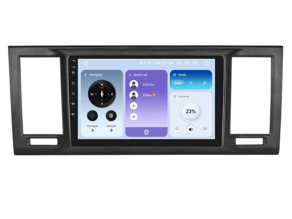 Obrovský displej autorádia je zaměřen na dokonalost a maximální přehled během cestování. Rozlišení rádia je v HD rozlišení s uhlopříčkou o neuvěřitelných 9 palců což je v přepočtu 23 cm. Díky velikosti obrazovky se autorádio pyšní větším displejem než originální model autorádia. Zařízení zvládnete ovládat hravě pomocí jemného dotyku na displej, který je velmi citlivý i při stisknutí ikony v rukavicích.