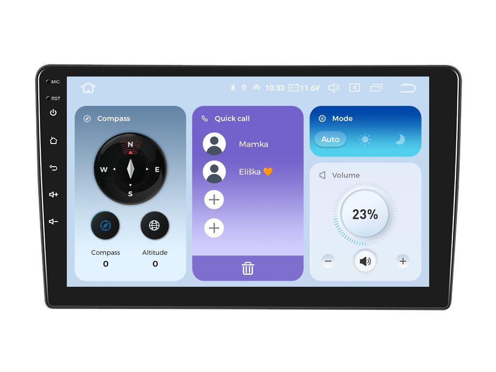 Obrovský displej autorádia je zaměřen na dokonalost a maximální přehled během cestování. Rozlišení rádia je v HD rozlišení s uhlopříčkou o neuvěřitelných 9 palců což je v přepočtu 23 cm. Díky velikosti obrazovky se autorádio pyšní větším displejem než originální model autorádia. Zařízení zvládnete ovládat hravě pomocí jemného dotyku na displej, který je velmi citlivý i při stisknutí ikony v rukavicích.