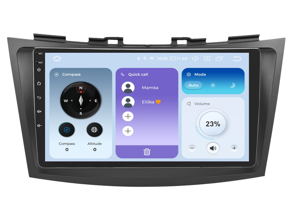 Cesta automobilem se změní na nevšední zážitek díky autorádiu Xtrons IQP-XEV49 pro Suzuki Swift II (Gen 4). Přednostním rysem tohoto rádia je velká a přehledná dotyková obrazovka s neuvěřitelným rozměrem 9 palců a LCD IPS technologií zobrazení. Pro Vaši představu se jedná o přibližnou velikost 23 cm. Díky přehledné obrazovce budete mít veškeré ikony na dosah ruky. Autorádio se může pyšnit 8 GB RAM a dostatečně velkou vnitřní paměti o velikosti 256 GB. O nepostradatelný zvukový zážitek se postará rozšířený zvukový ekvalizér s moderní funkcí DSP (Digital signal processor), která Vám mnohonásobně zvýší kvalitu přehrávané hudby. Díky 4G modulu se můžete stát majitelem autorádia, který funguje i jako smartphone, umožňující využívání online GPS navigace a dalších funkcí. Aplikace Apple CarPlay a Android Auto Vás jistě oslní svým bezproblémovým propojením autorádia s mobilním telefonem. Za pomocí této chytré funkce můžete hravě ovládat svůj telefon na obrazovce autorádia. Funkce Bluetooth Vám umožní pohodlné a bezpečné Handsfree volání a vyřizování důležitých hovorů. Pokud si občas nevíte rady se správnou cestou, můžete využít zabudovaného GPS modulu, který Vás přivede na tu správnou cestu. Pomocí Google obchodu si můžete stáhnout svou oblíbenou GPS navigaci. Operační systém Android 14 se postará o ovládání nespočtů oblíbených aplikací. Své spolujezdce při dlouhých cestách můžete zabavit oblíbeným filmem či videem. Ti budou ohromeni obrazovkou v HD rozlišení. Pro bezpečné couvání můžete využít snadné propojení autorádia s parkovací kamerou. Autorádio nabízí možnost výběru z různých jazyků, které obsahují přeloženou základní část systému do českého jazyka.