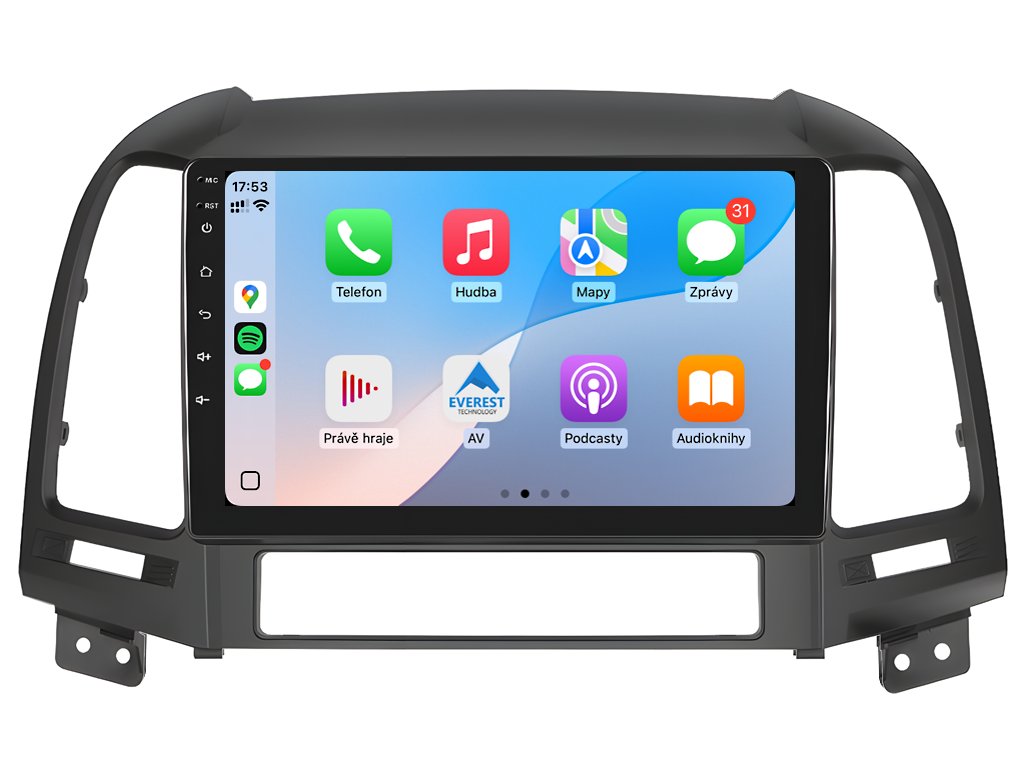 Cesta automobilem se změní na nevšední zážitek díky autorádiu Xtrons IQP-XEV55 pro Hyundai Santa Fe II. Přednostním rysem tohoto rádia je velká a přehledná dotyková obrazovka s neuvěřitelným rozměrem 9 palců a LCD IPS technologií zobrazení. Díky přehledné obrazovce budete mít veškeré ikony na dosah ruky. Autorádio se může pyšnit 8 GB RAM a dostatečně velkou vnitřní paměti o velikosti 256 GB. O nepostradatelný zvukový zážitek se postará rozšířený zvukový ekvalizér s moderní funkcí DSP (Digital signal processor), která Vám mnohonásobně zvýší kvalitu přehrávané hudby. Díky 4G modulu se můžete stát majitelem autorádia, který funguje i jako smartphone, umožňující využívání online GPS navigace a dalších funkcí. Aplikace Apple CarPlay a Android Auto Vás jistě oslní svým bezproblémovým propojením autorádia s mobilním telefonem. Za pomocí této chytré funkce můžete hravě ovládat svůj telefon na obrazovce autorádia. Funkce Bluetooth Vám umožní pohodlné a bezpečné Handsfree volání a vyřizování důležitých hovorů. Pokud si občas nevíte rady se správnou cestou, můžete využít zabudovaného GPS modulu, který Vás přivede na tu správnou cestu. Pomocí Google obchodu si můžete stáhnout svou oblíbenou GPS navigaci. Operační systém Android 14 se postará o ovládání nespočtů oblíbených aplikací. Své spolujezdce při dlouhých cestách můžete zabavit oblíbeným filmem či videem. Ti budou ohromeni obrazovkou v HD rozlišení. Pro bezpečné couvání můžete využít snadné propojení autorádia s parkovací kamerou. Autorádio nabízí možnost výběru z různých jazyků, které obsahují přeloženou základní část systému do českého jazyka.
