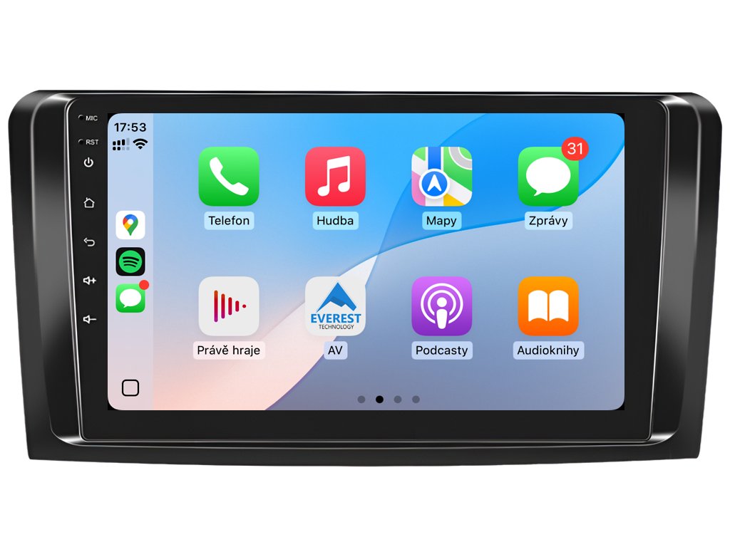 Cesta automobilem se změní na nevšední zážitek díky autorádiu Xtrons IQP-XEV65 pro Mercedes-Benz ML nebo GL. Přednostním rysem tohoto rádia je velká a přehledná dotyková obrazovka s neuvěřitelným rozměrem 9 palců a LCD IPS technologií zobrazení. Pro Vaši představu se jedná o přibližnou velikost 26 cm. Díky přehledné obrazovce budete mít veškeré ikony na dosah ruky. Autorádio se může pyšnit 8 GB RAM a dostatečně velkou vnitřní paměti o velikosti 256 GB. O nepostradatelný zvukový zážitek se postará rozšířený zvukový ekvalizér s moderní funkcí DSP (Digital signal processor), která Vám mnohonásobně zvýší kvalitu přehrávané hudby. Díky 4G modulu se můžete stát majitelem autorádia, který funguje i jako smartphone, umožňující využívání online GPS navigace a dalších funkcí. Aplikace Apple CarPlay a Android Auto Vás jistě oslní svým bezproblémovým propojením autorádia s mobilním telefonem. Za pomocí této chytré funkce můžete hravě ovládat svůj telefon na obrazovce autorádia. Funkce Bluetooth Vám umožní pohodlné a bezpečné Handsfree volání a vyřizování důležitých hovorů. Pokud si občas nevíte rady se správnou cestou, můžete využít zabudovaného GPS modulu, který Vás přivede na tu správnou cestu. Pomocí Google obchodu si můžete stáhnout svou oblíbenou GPS navigaci. Operační systém Android 14 se postará o ovládání nespočtů oblíbených aplikací. Své spolujezdce při dlouhých cestách můžete zabavit oblíbeným filmem či videem. Ti budou ohromeni obrazovkou v HD rozlišení. Pro bezpečné couvání můžete využít snadné propojení autorádia s parkovací kamerou. Autorádio nabízí možnost výběru z různých jazyků, které obsahují přeloženou základní část systému do českého jazyka.